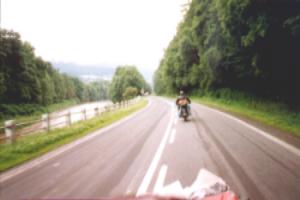 na drodze. Lekko tylko zawilgoceni dojeżdżamy do przejścia w Harrahowie. Około sześćdziesięciu kilometrów od Pragi złapała nas ulewa. Nie pomogły kombinezony. Trzeba się było zatrzymać pod jakimś wiaduktem. Praga przywitała nas lekkim rozpogodzeniem. Popołudniową paradę już sześciu dromaderów widziało (jak się okazało po powrocie) wielu znajomych. Na zwiedzanie tego pięknego miasta nie było wiele czasu, bo trzeba było znaleźć coś do spania. Spacer Mostem Karola, i do maszyn. Niezbyt prostym okazało się znalezienie jakiegoś taniego spania w tym obleganym przez turystów miejscu. Ostatecznie, po długim błądzeniu wyjechaliśmy poza miejskie mury i założyliśmy dzikie obozowisko na łące.