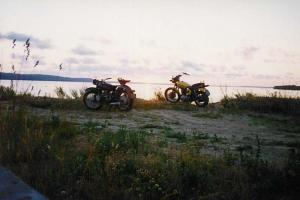 Po remoncie Junak jak nowy, idzie jak burza i do tego pali 3,5 litra! Gonimy całą paczkę, która pojechała w stronę Suwałk, do Raczek. Nad jeziorem cała ekipa czuła się już jak u siebie w domu. Z trudem zsiadamy (za nami trzysta kilometrów) i zabieramy się do rozstawiania namiotu. Ognisko ukoiło nasze zbolałe stawy, a do jedzenia tym razem były... ryby złowione pospołu przez gospodarza, Kaczora, Wicia i Tomka.