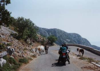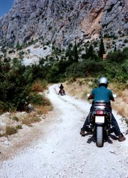 ![]() (od poziomu praktycznie 0!). Liczymy na dobrą widoczność, ponoć widać stamtąd Włochy. Za Makarską w lewo na wąską drogę i...Skończył sie asfalt!Czyżby pomyłka?