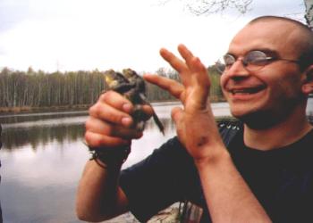 Ulubiona zabawa Sprytnego. Masturbowanie żaby nad brzegiem jeziorka :)Jaka ona była zadowolona :)