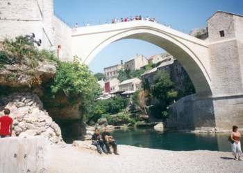 Mostar-Bosnia, kolesie o wyglądzie Johny Bravo skakali z tego mostu, w przyszłym roku wróce tam i też