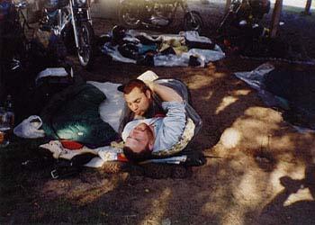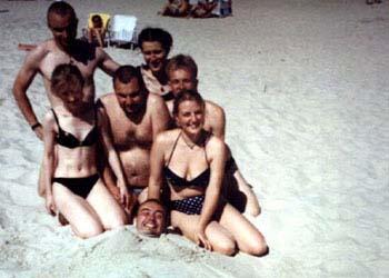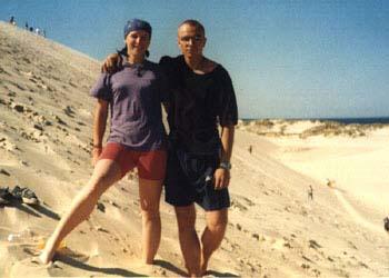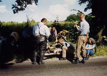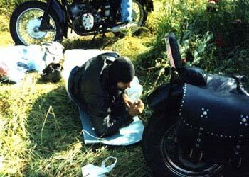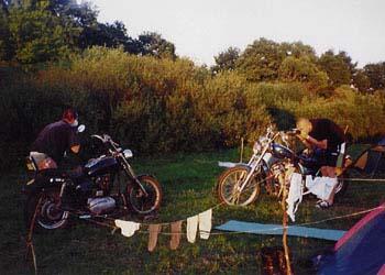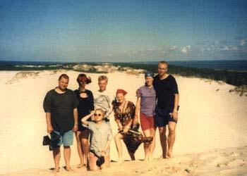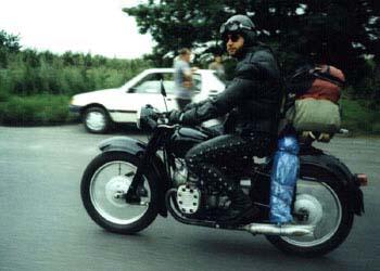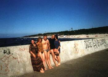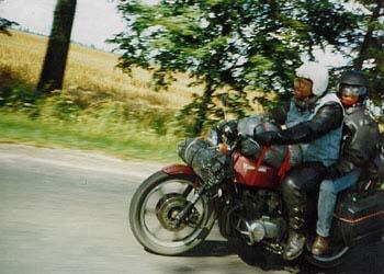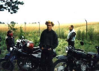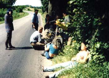 Na początku swej podróży, Sprytny z Kasią jechał w burzy, Potem u Prezesa w chacie, Suszą mokre z deszczu gacie, Bo w sobotę wcześnie rano, Kurs na Pragę zapodano, Po zwiedzeniu części Pragi, Kiedy portfel był już nagi, By nie zginąć w wodnym szmelcu, Grupa zjawia się w Zgorzelcu, Tam z powodu deszczu z nieba, Dzień odczekać było trzeba, Lecz we wtorek po śniadaniu, Wszyscy myślą o jechaniu, Wbici w bardzo ciepłe skóry, Nie jedziemy jednak w góry, Lecz ze względu na kobiety, Kurs nad morze jest niestety, Tam jest woda, opalanie, Wniebowzięte nasze panie, Piekna droga przy granicy, Białoruscy rozbójnicy, To prądnica nie ładuje, To uszczelki wydmuchuje, Z tej wyprawy morał taki: Można liczyć na Junaki, Gdy "japonia" nie zawiedzie, Polskę wokół się objedzie. I ostatni wniosek krótki: Ludzie byli bardzo zżyci, Choć tak rzadko byli myci... A oto fotki z wyprawy: |